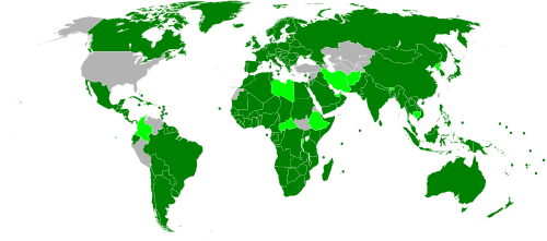 الدول التي وقعت، ولكن لم تصدق بعدكمبوديا، جمهورية أفريقيا الوسطى، تشاد، كولومبيا، جمهورية الدومنيكان، السلڤادور، إثيوبيا، إيران، جمهورية كوريا الديموقراطية، ليبيا، ليختنشتاين، ملاوي، النيجر، رواندا، سوازيلاند، سويسرا، تايلند، الإمارات العربية المتحدة.