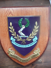 Whereas most universities will primarily use a logo on documents but will still use their coat of arms on degree certificates etc, UCL seems to be content with exclusively using its logo.[39] UCL does have a coat of arms which depicts a raised bent arm dressed in armour holding a green upturned open wreath.[40]