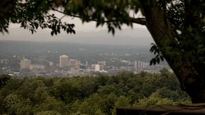The city's Mohawk name, Unundadages ("around the hill") refers to a bend in the Mohawk River that flows around the city's elevated position as seen from the Deerfield Hills in the north.[20] The Erie Canal and Mohawk River pass through northern Utica; northwest of downtown is the Utica Marsh, a group of cattail wetlands between the Erie Canal and Mohawk River (partially in the town of Marcy) with a variety of animals, plants and birds.[96][97] During the 1850s, plank roads were built through the marshland surrounding the city.[98] Utica's suburbs have more hills and cliffs than the city. Located where the Mohawk Valley forms a wide floodplain, the city has a generally sloping, flat topography.[92]