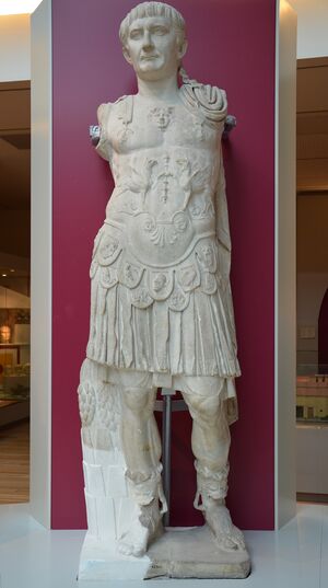 Displaying their fondness for Cato, "the people of Utica...called Cato their saviour and benefactor... And this they continued to do even when word was brought that Caesar was approaching. They decked his body in splendid fashion, gave it an illustrious escort, and buried it near the sea, where a statue of him now stands, sword in hand".[13] After his death, Cato was given the name of Uticensis, due to the place of his death as well as to his public glorification and burial by the citizens of Utica.[14]