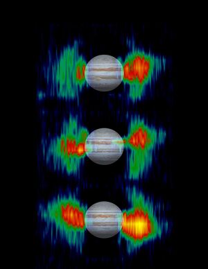 Radiation belts exist around other planets and moons in the Solar System that have magnetic fields powerful and stable enough to sustain them. Radiation belts have been detected at Jupiter, Saturn, Uranus and Neptune through in-situ observations, such as by the Galileo and Juno spacecraft at Jupiter, Cassini–Huygens at Saturn, and fly-bys from the Voyager program and Pioneer program. Observations of radio emissions from highly energetic particles that are trapped in a planets magnetic field have also been used to remotely detect radiation belts, including at Jupiter [9] and at the ultracool dwarf LSR J1835+3259.[10] It is possible that Mercury (planet) may be able to trap charged particles in its magnetic field,[11] although its highly dynamic magnetosphere (which varies on the order of minutes [12]) may not be able to sustain stable radiation belts. Venus and Mars do not have radiation belts, as their magnetospheric configurations do not trap energetic charged particles in orbit around the planet.