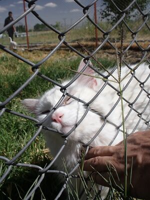 Van cats form a landrace (naturally occurring, free-breeding variety, often feral), not a standardized breed of cat.[17] They can still be found in east Turkey, near Lake Van, although their numbers have diminished (a 1992 survey found only 92 pure Van cats in their native area).[18] There is a breeding programme for the all-white variety,[19] operated by the Van Cat Research Centre (a.k.a. the Van Cat House), established in 1995 at the campus of Yüzüncü Yıl University.[20] اعتبارا من 2018[تحديث] the centre housed about 350 young adults and kittens, is open to the public for a nominal entrance fee,[21] and cats can be adopted.[20] However, reports have suggested that the living conditions for the cats held there are not optimal, and the programme seems to be ineffective in reversing Van cats' declining numbers.[3]