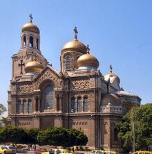 The province's territory is 3,819.5 km².[1] It borders the Black Sea and covers parts of the hilly Danubian Plain (including parts of the Franga Plateau, South Dobruja, the Provadiya Plateau, Ludogorie, and the Avren Plateau), Eastern Stara Planina, the Varna–Devnya valley with the lakes (limans) of Varna and Beloslav, and the Kamchiya river valley. Other rivers include Provadiya, Devnya, and Batova, and the largest artificial lake is Tsonevo.