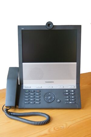 Videotelephony (also known as videoconferencing or video calling) is the use of audio and video for simultaneous two-way communication.[1] Today, videotelephony is widespread. There are many terms to refer to videotelephony. Videophones are standalone devices for video calling (compare Telephone). In the present day, devices like smartphones and computers are capable of video calling, reducing the demand for separate videophones. Videoconferencing implies group communication.[2] Videoconferencing is used in telepresence, whose goal is to create the illusion that remote participants are in the same room.