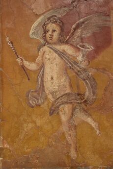 The luxury of the villa is evidenced not only by the many works of art, but especially by the large number of rare bronze statues found there, all masterpieces. The villa housed a collection of at least 80 sculptures of magnificent quality,[12] many now conserved in the Naples National Archaeological Museum.[2] Among them is the bronze Seated Hermes, found at the villa in 1758. Around the bowl of the atrium impluvium were 11 bronze fountain statues depicting Satyrs pouring water from a pitcher and Amorini pouring water from the mouth of a dolphin. Other statues and busts were found in the corners around the atrium walls.[2]