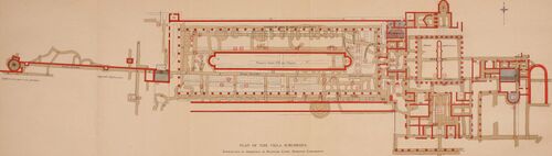 Excavation to expose part of the villa was done in the 1990s and revealed two previously undiscovered lower floors to the villa[9] with frescoes in situ. These were found along the southwest-facing terrace of about 4 metres height. The first row of rooms lying below the arcade was evidenced by a series of rectangular openings along the façade.