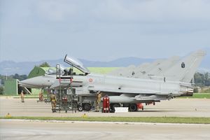 The military airfield is intituled to the Italian aviator ليڤيو باسي. المطار هو قاعدة "جناح 37 مقاتلات" في القوات الجوية الإيطالية وفيه Eurofighter Typhoon, and for the "82th CSAR" (Combat Search and Rescue) with the helicopters AgustaWestland AW139.[3]