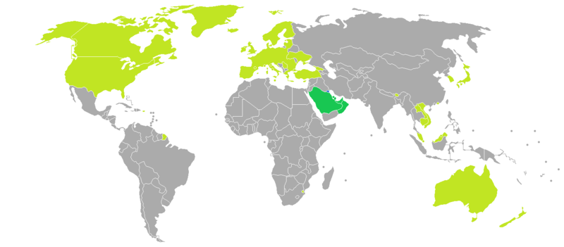 حاملو جوازات السفر الدبلوماسية أو الرسمية من ألبانيا, الجزائر, أذربيجان, بنگلادش, بلغاريا, قبرص, الصين, مصر, ألمانيا, هندوراس, المجر, الهند, إيرلندا, مالطا, منغوليا, المغرب, باكستان, بيرو, الفلبين, البرتغال, رومانيا, روسيا, صربيا, كوريا الجنوبية, سويسرا, طاجيكستان, تركيا, أوكرانيا, المملكة المتحدة وفيتنام وجوازات السفر الدبلوماسية لأرمينيا, إستونيا, فرنسا, اليونان, إيطاليا, العراق, المكسيك, بولندا, إسبانيا وأوزبكستان[3] لا يحتاجون إلى تأشيرة، وتم توقسع إتفاق مع جيبوتي في يوليو 2019 ولكن لم يتم التصديق عليه حتى الآن .[4] </ref