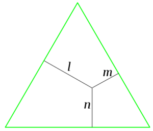 ولنفترض أن P هي أي نقطة داخل المثلث، و u, s, t هي مسافات P عن الأضلاع. ارسم خطاً من P إلى كلٍ من A ، B ، و C ، مشكلاً ثلاث مثلثات PAB و PBC و PCA.