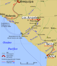 After the battle of Angamos and once Chile achieved naval supremacy, the government had to decide where to strike. The options were Tarapacá, Moquegua or directly Lima. Because of the proximity to Chile and the capture of the Peruvian Salitreras, Chile decided to occupy first the Peruvian Province of Tarapacá.