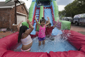 Inflatable water slides are typically made of a thick strong PVC or vinyl and nylon, and are inflated using a blower. The water slide is attached to a water hose in order to generate the supply of water. There are small-sized inflatable water slides for private house uses or larger inflatable water slides for school, picnic, corporate, or carnival style use.