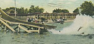 A water coaster is a water slide that emulates a roller coaster by providing not only descents, but also ascents. There are three different ways water coasters operate: water jets,[50] conveyor belts,[51] and linear induction motors.[52] High-powered water jets power the first type of water coaster, generically known as “Master Blasters”. Originally manufactured by New Braunfels General Store (NBGS), the rights were sold in December 2006 to WhiteWater West of Canada.[53] The first installations of this type of ride were Dragon Blaster and Family Blaster, installed in 1994, at Schlitterbahn in New Braunfels, Texas. The following month, a third Master Blaster opened at Adventure Bay in Houston, Texas.[54] This type of ride features over 70 installations worldwide.[50] The largest collection of Master Blasters is at Wild Wadi Water Park in Dubai, where 9 of the park's 16 water slides utilize this technology, propelling riders to the top of a mountain.[55] In 2021, WhiteWater West opened their tallest Master Blaster, and tallest water coaster in the world, Tsunami Surge at Six Flags Hurricane Harbor Chicago.[56]