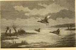 - عندما يتجمع أكبر عدد ممكن من البط بمساحة ضيقة نقوم بصيدها بالبندقية.