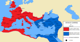 Following the Roman conquest of the Hellenistic world, the concept of a "West" arose, as there was a cultural divide between the Greek East and Latin West. The Latin-speaking Western Roman Empire consisted of Western Europe and Northwest Africa, while the Greek-speaking Eastern Roman Empire consisted of the Balkans, Asia Minor, Egypt and Levant. The "Greek" East was generally wealthier and more advanced than the "Latin" West.[بحاجة لمصدر] With the exception of Italia, the wealthiest provinces of the Roman Empire were in the East, particularly Roman Egypt which was the wealthiest Roman province outside of Italia.[62][63] Nevertheless, the Celts in the West created some significant literature in the ancient world whenever they were given the opportunity (an example being the poet Caecilius Statius), and they developed a large amount of scientific knowledge themselves (as seen in their Coligny Calendar).