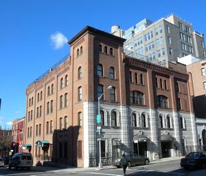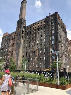 In 2007, three buildings of the Domino Sugar Refinery were also designated New York City Landmarks. The original refinery was built in 1856, and by 1870 processed more than half of sugar used in the United States. A fire in 1882 caused the plant to be completely rebuilt in brick and stone; these buildings exist today, though the refinery stopped operating in 2004.[57] In 2010, a developer proposed to convert the site to residential use;[58] since them, a new plan was approved for the Domino Sugar Factory, led by Two Trees Management.[59]