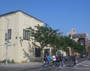 Williamsburg, especially near the waterfront, was a vital industrial district until the mid-20th century. As many of the jobs were outsourced beginning in the 1970s, the area endured a period of economic contraction which did not begin to turn around until activist groups began to address housing, infrastructure, and youth education issues in the late 20th century.[7] An ecosocial arts movement emerged alongside the activists in the late 1980s, often referred to as the Brooklyn Immersionists.[8] The community-based scene cultivated a web of activity in the streets, rooftops and large warehouses, and attracted both the national and international press.[9][10] Small, locally owned businesses began to return to the neighborhood during this expansion of creative urbanism in the 1990s.[11]
