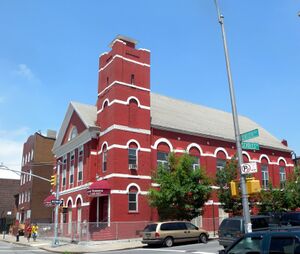 Public School 71K, built in 1888–1889 to designs by James W. Naughton, was made a NRHP landmark in 1982, though it no longer serves as a public school.[67]