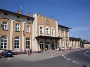 The Września railway station is located in the town, and there are also two defunct narrow-gauge railway stations, Września Miasto and Września Wąskotorowa .